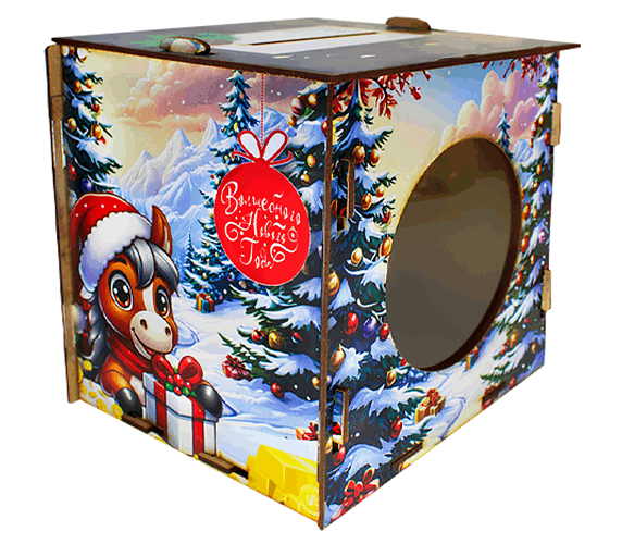 Новогодняя упаковка «Копилка Куб» (дерево)